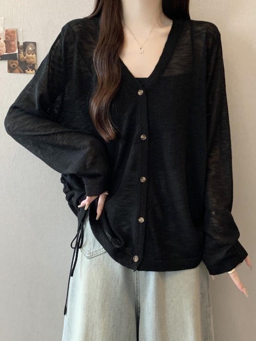 여성 가을 빅 사이즈 화이트 긴팔 니트 카디건
