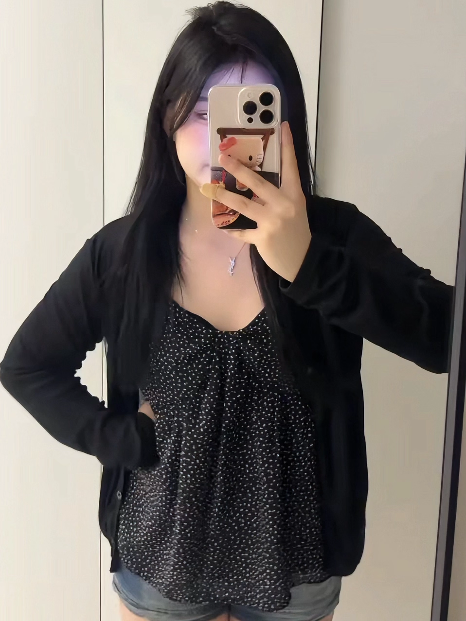 여성 여름 빅사이즈 도트 리본 나시 가디건 브이넥 상의