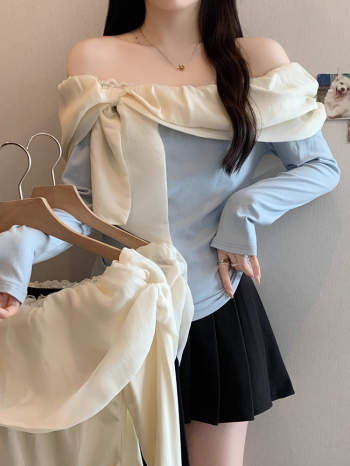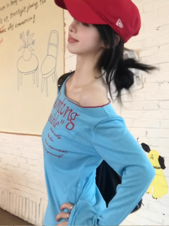 여성 가을 빅 사이즈 빈티지 오프숄더 긴팔 티