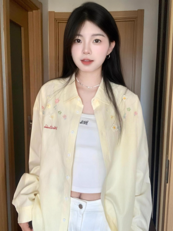 여성 가을 빅사이즈 자수 스트라이프 셔츠