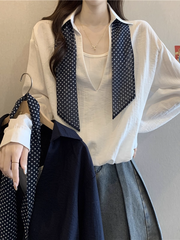 여성 가을 빅 사이즈 페이크 투피스 긴팔 셔츠