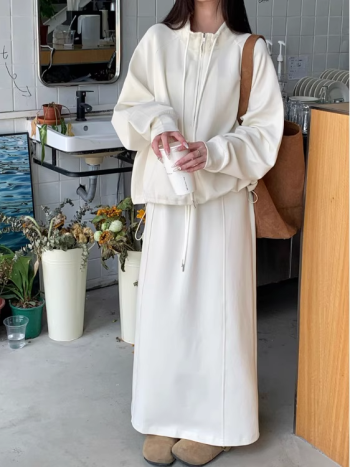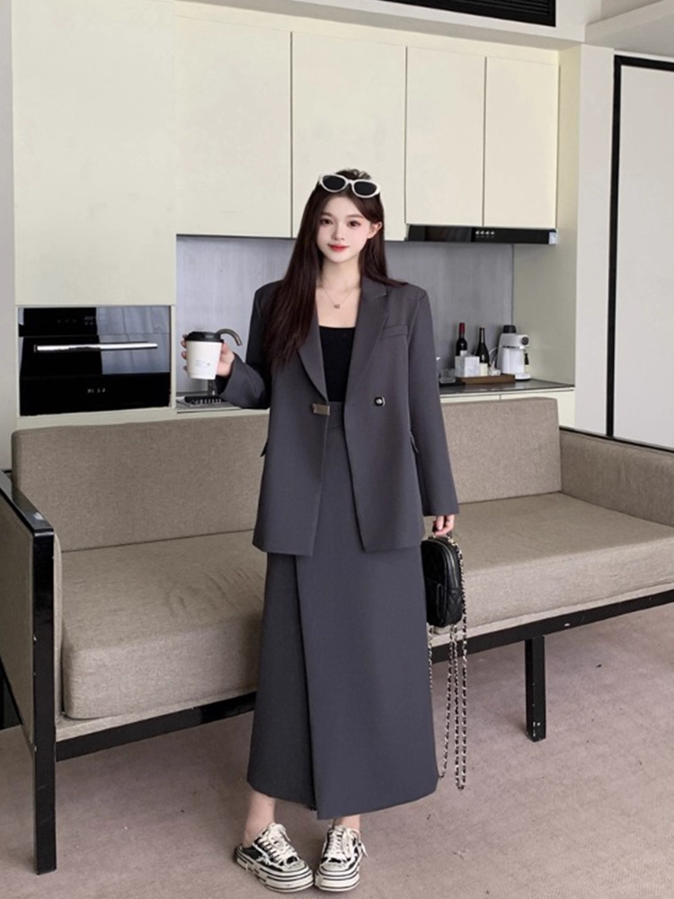 여성 가을 빅사이즈 정장 긴팔 코트 스커트 투피스