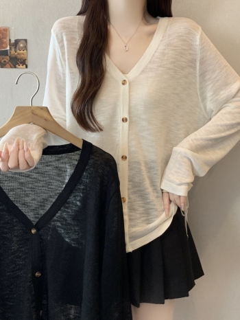 여성 여름 빅사이즈 펀칭 라운드 냉장고 긴팔 니트
