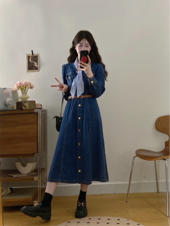 여성 가을 빅 사이즈 빈티지 데님 스커트
