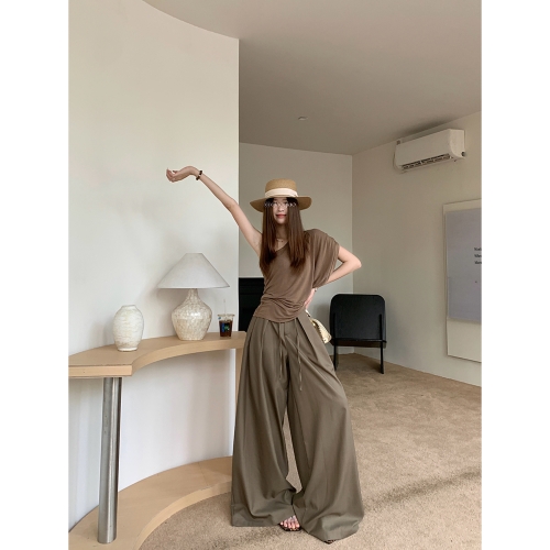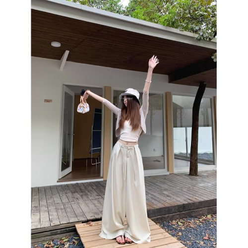 여성 가을 빅 사이즈 스트라이프 블라우스 와이드 팬츠 캐주얼 세트
