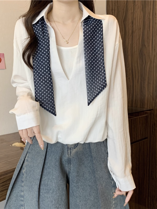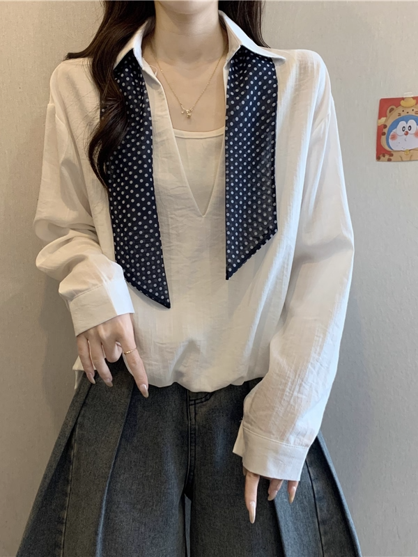 여성 가을 빅 사이즈 페이크 투피스 긴팔 셔츠