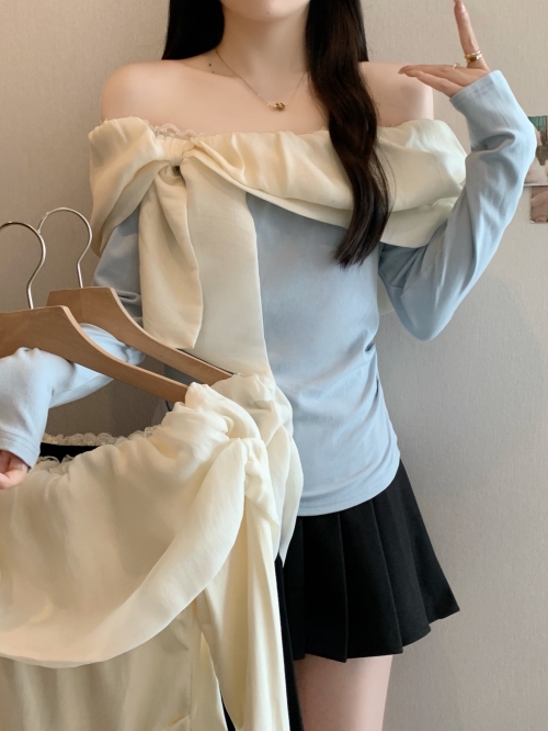 여성 가을 빅 사이즈 프렌치 리본 일자 숄더 니트