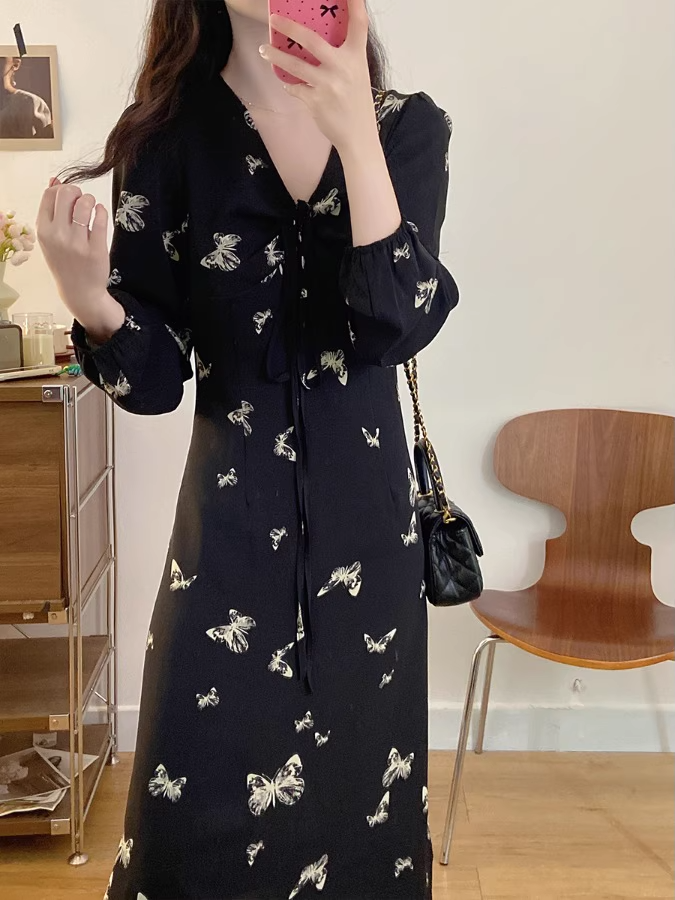 여성 가을 빅사이즈 프렌치 긴팔 원피스 잔꽃무늬 원피스