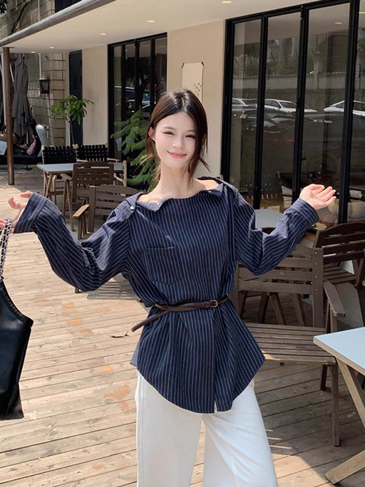 여성 가을 스트라이프 긴팔 셔츠 루즈핏 날씬해 보이는 고급스러운 상의