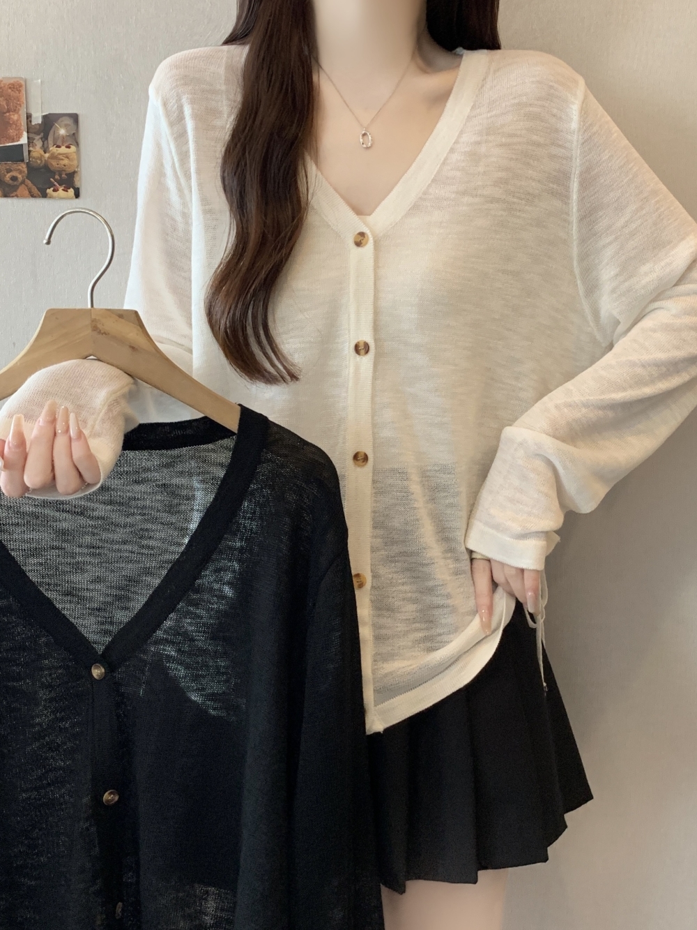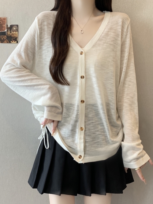여성 가을 빅 사이즈 화이트 긴팔 니트 카디건