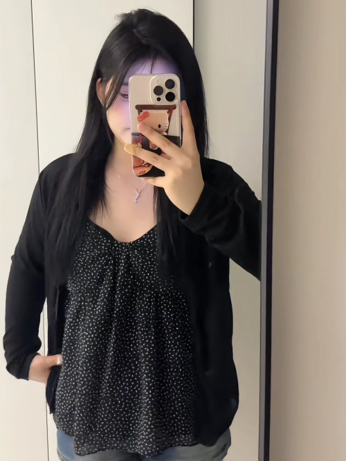 여성 여름 빅사이즈 도트 리본 나시 가디건 브이넥 상의